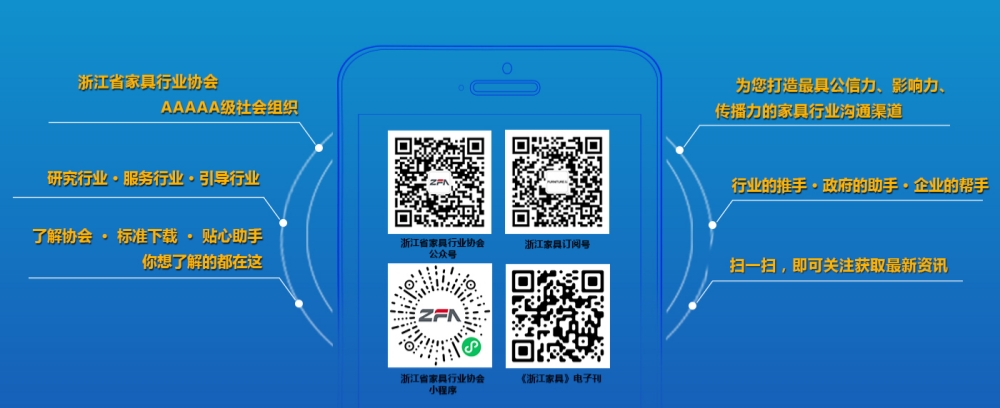 浙江省家具行業(yè)協(xié)會成立于1990年3月21日,“5A級社會組織”,浙江省品牌社會組織。英文名稱:ZHEJIANG PROVINCE FURNITURE ASSOCIATION,縮寫為ZFA。